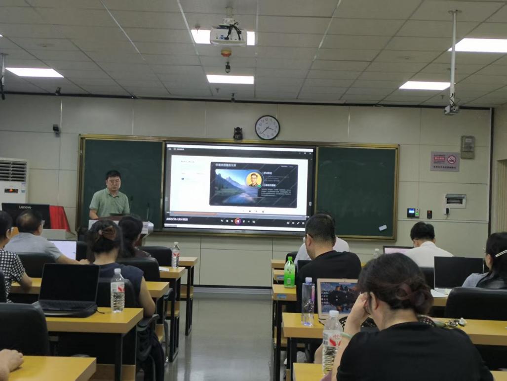 为深入贯彻落实国家教育数字化战略行动,扎实推进我院青年教师素质能力提升“六个一”行动计划,10 月 9 日下午,外国语学院在人文楼 21B602 开展青年教师素质能力提升 “六个一” 行动课程建设系列讲座。学院党委书记王海燕、副院长项军平,各系部主任、教研室主任、新进博士教师,国家级、省级一流课程负责人,相关校级示范课程负责人及对智慧课程建设感兴趣的专任教师参会。讲座由英语系主任李前主持。