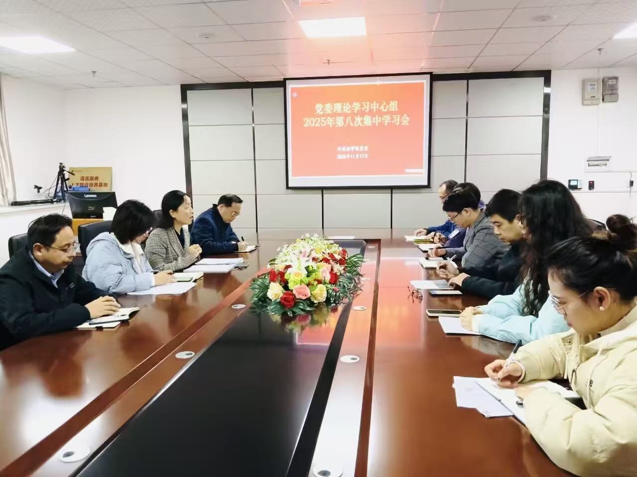 11月17日下午,外国语学院党委理论学习中心组召开2025年第8次集中学习(扩大)会,专题学习党的二十届四中全会精神,研究部署外院贯彻落实工作,党委书记王海燕主持集体学习并讲话。外院党委委员,党委理论学习中心组成员及各党支部书记参加会议。