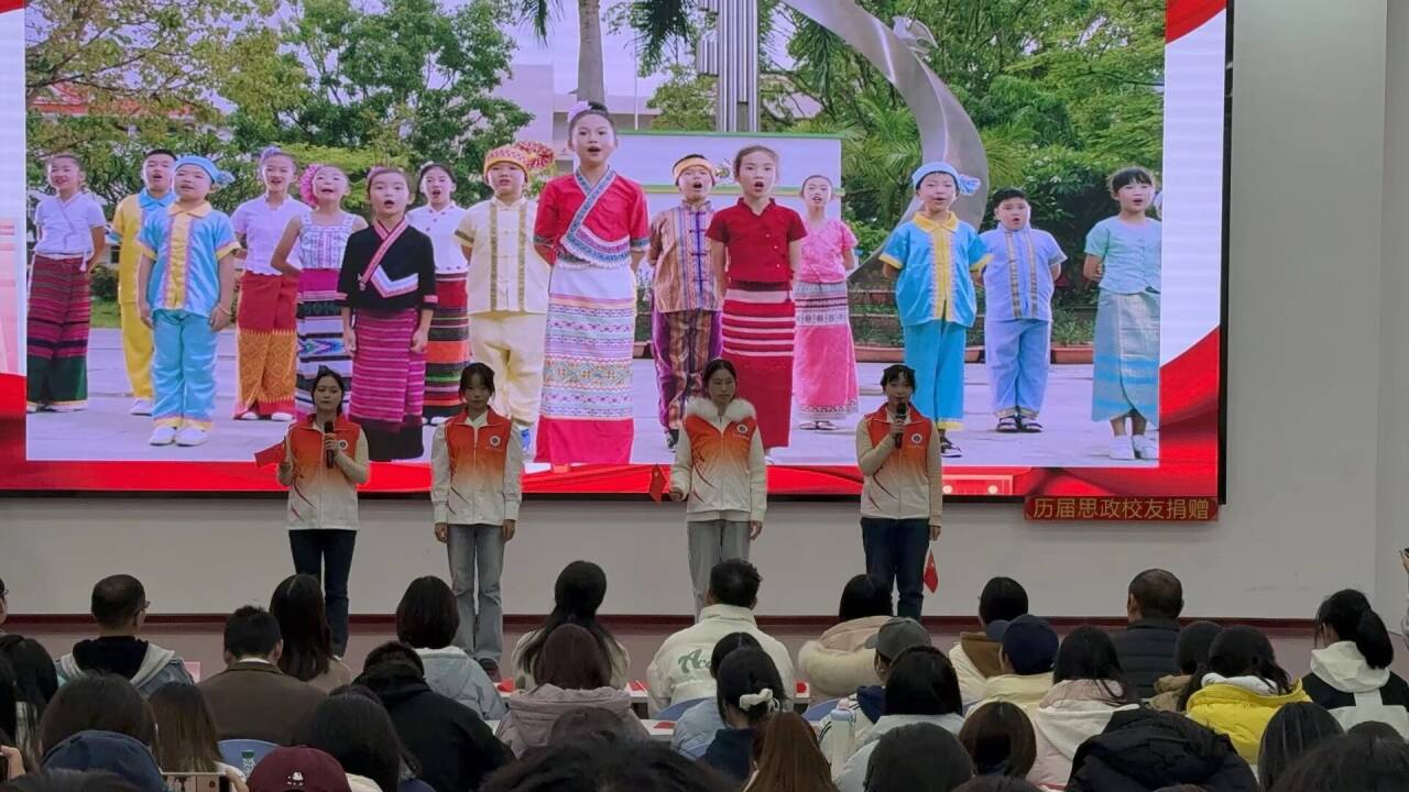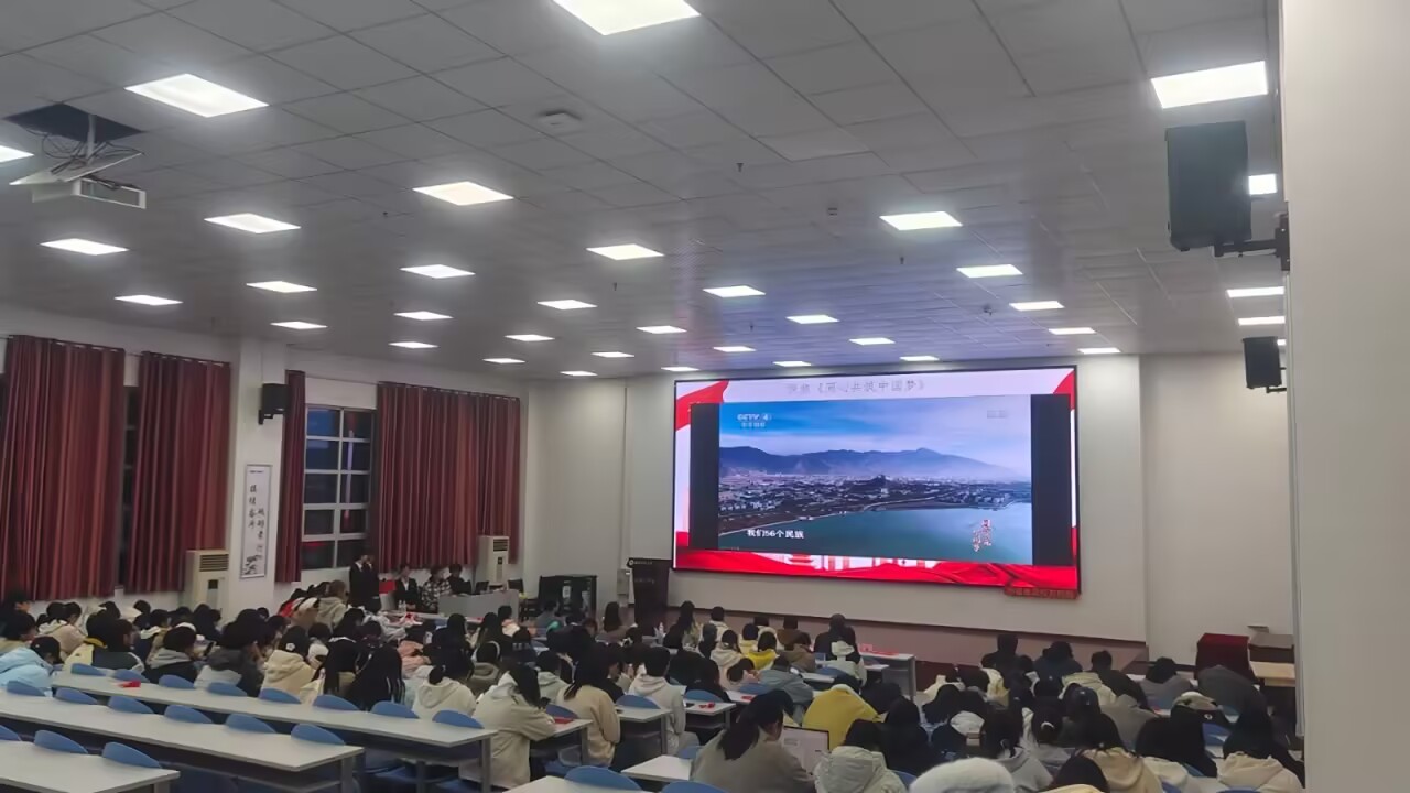 榜样如灯,照亮前行之路;初心如磐,凝聚奋进之力。活动现场播放的专题视频《同心共筑中国梦》,以生动影像铺展了民族地区的发展新篇。从边疆村寨的基础设施完善到特色产业的富民增收,从和美村寨的生态宜居到各族群众的幸福笑颜,视频全景呈现了少数民族发展资金扶持、兴边富民行动、乡村振兴衔接等一系列政策的实践成效。这些看得见、摸得着的民生改善与发展成果,深刻彰显了国家对民族地区的关怀与支持,让在场学子直观感受到好政策为各民族带来的美好生活,更坚定了铸牢中华民族共同体意识、携手共赴共同富裕的信念。