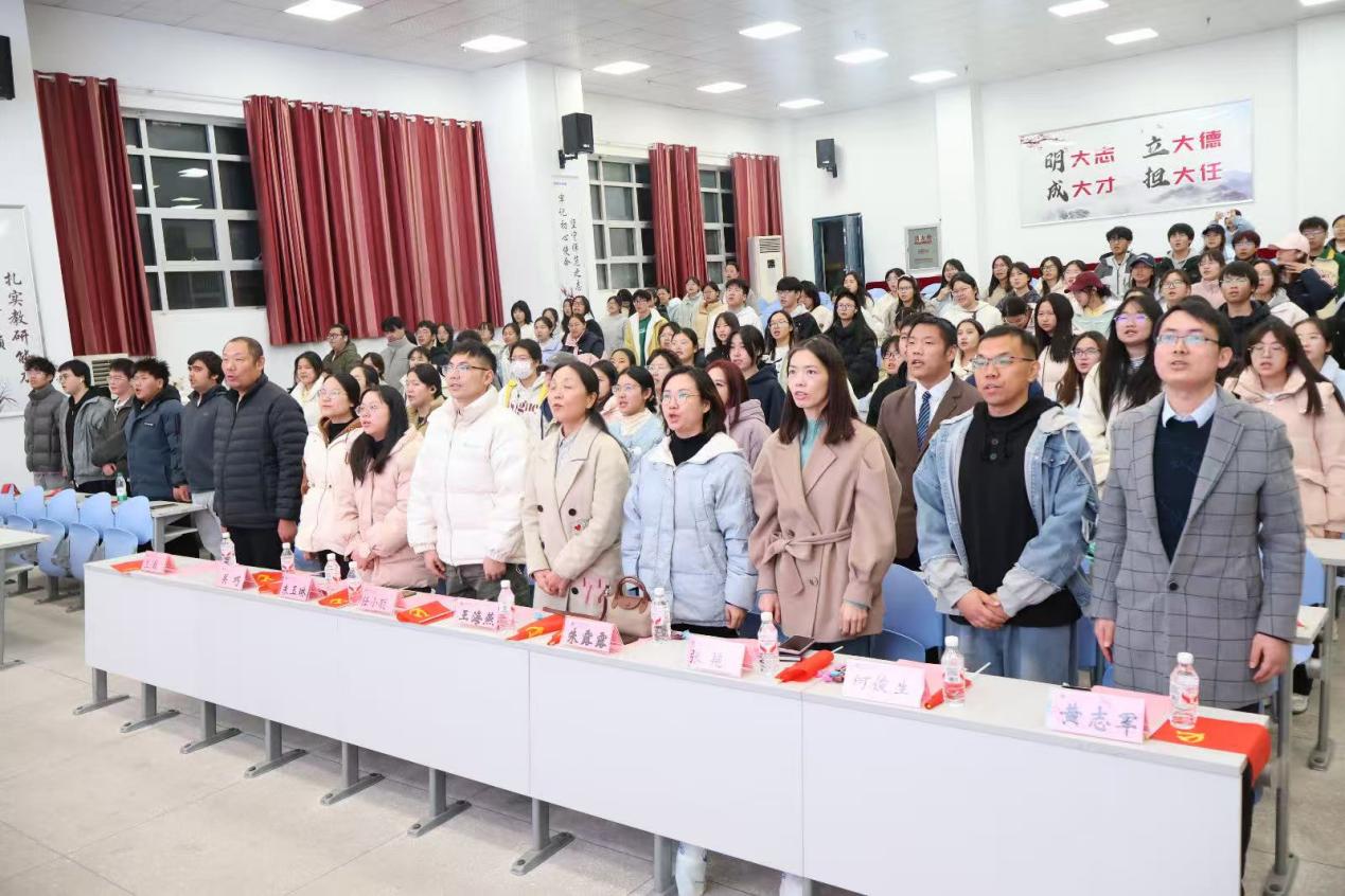 “我承诺,以语言为桥,传递民族之声;以文化为媒,共筑中华精神家园;尊崇差异包容多样,携手奋进新时代;筑牢中华民族共同体意识,同心共筑中国梦!” 在主持人的带领下,全体师生起立肃立,庄严宣誓。铿锵有力的誓言响彻讲堂,既是对民族团结的郑重承诺,更是对新时代使命的主动担当,将活动气氛推向高潮。