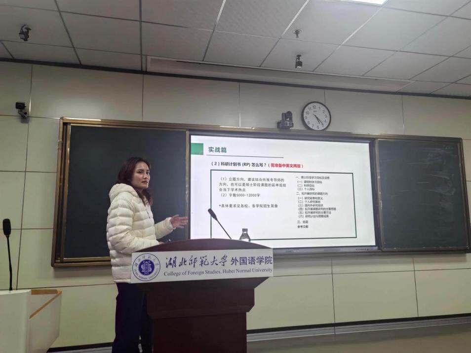盛雅乔同学为我校外国语学院2021级研究生。在今年凭借卓越的学术素养、扎实的科研能力与突出的综合素质,经严格选拔,成功考取华中师范大学外国语言文学专业博士研究生!11 月 27 日下午,盛雅乔同学以“祛魅、避坑与精准突围”为主题的申博经验分享讲座在我院成功举办,我院2023级和2024级硕士研究生参加了本次讲座,讲座由副院长项军平主持。