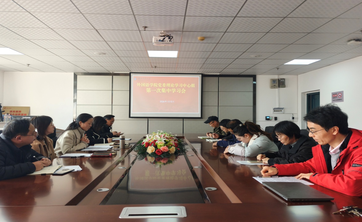 1月15日下午,外国语学院党委理论学习中心组召开2026年第1次集中学习会,党委书记王海燕主持集体学习并讲话。外院党委委员,党委理论学习中心组成员及各党支部书记参加会议。