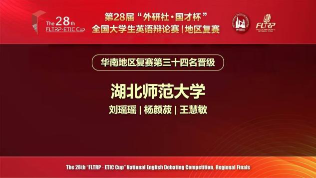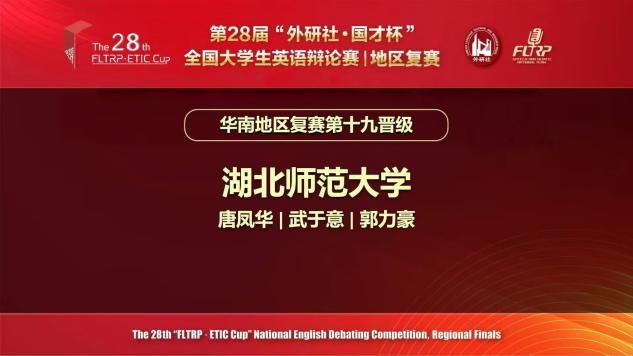 湖北师范大学精心组织、积极备赛,选派两支代表队参赛,分别由唐凤华、刘瑶瑶两位教师担任指导教师。备赛期间,外国语学院李程老师全程负责辩题解析,辩论稿打磨与日常模拟训练,为队员们提供了扎实的专业指导与强大的精神支持。